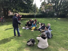 After having finished the tour, everybody regrouped at Raketenstation Hombroich in Neuss. In the calming atmosphere of the guesthouse “Kloster”, they enjoyed dinner and a quiet evening to think back on the day. After having been to an already unusual landscape the day before, Raketenstation Hombroich was another addition to the list of encounters with extraordinary spaces and turbulent pasts.